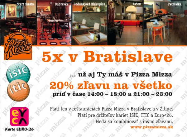 Zaregistrovali ste na webe www.euro26.sk novú zľavu v Pizza Mizza? Nie? Tak si to rýchlo prečítajte a zase ušetrite ďalšie peniaze!